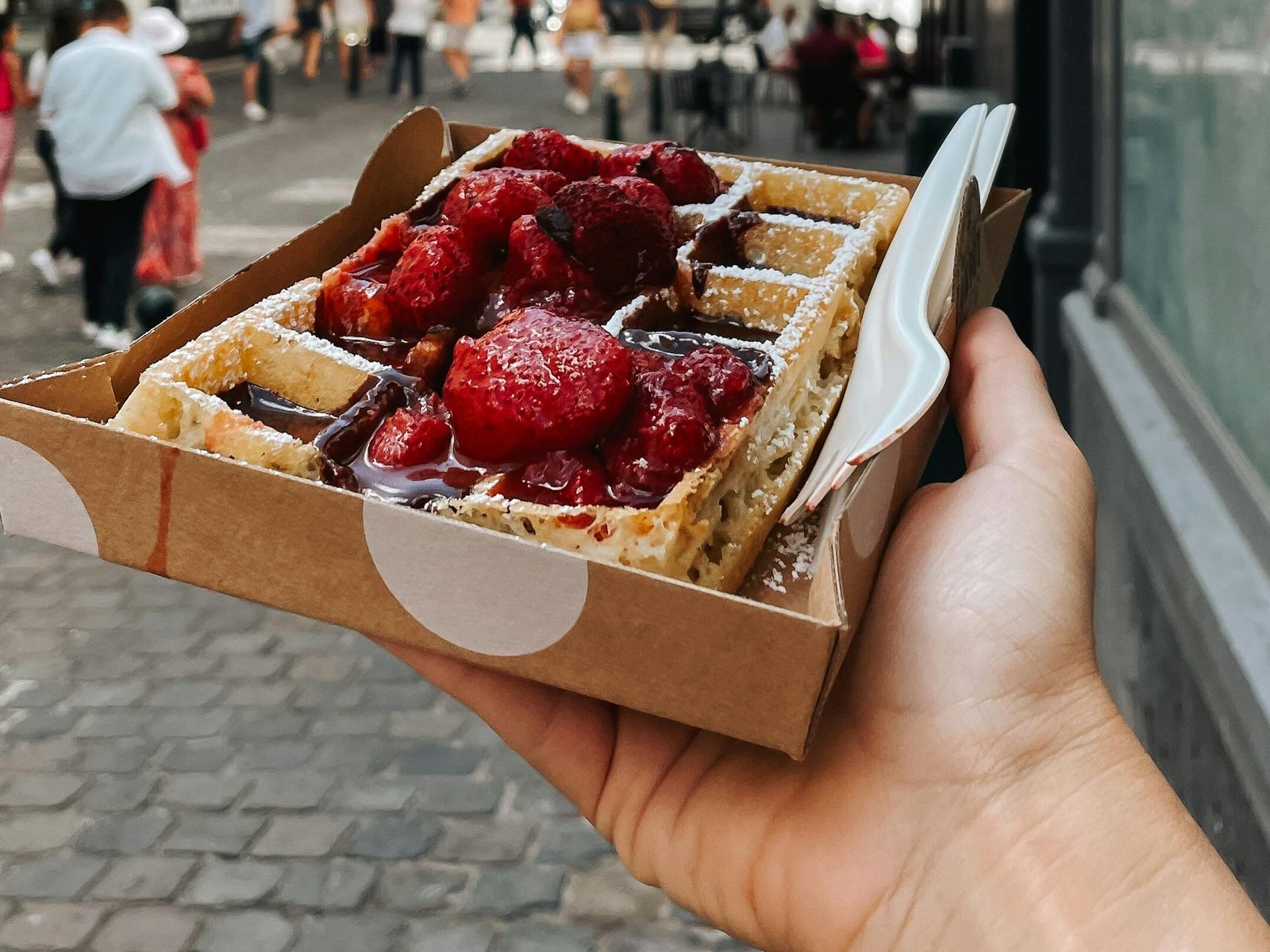 Descrição: Os waffles belgas são conhecidos por sua textura leve e crocante. Existem dois tipos principais: os waffles de Liège, que são mais doces e têm uma textura mais densa devido ao açúcar caramelizado, e os waffles de Bruxelas, que são mais leves e crocantes.